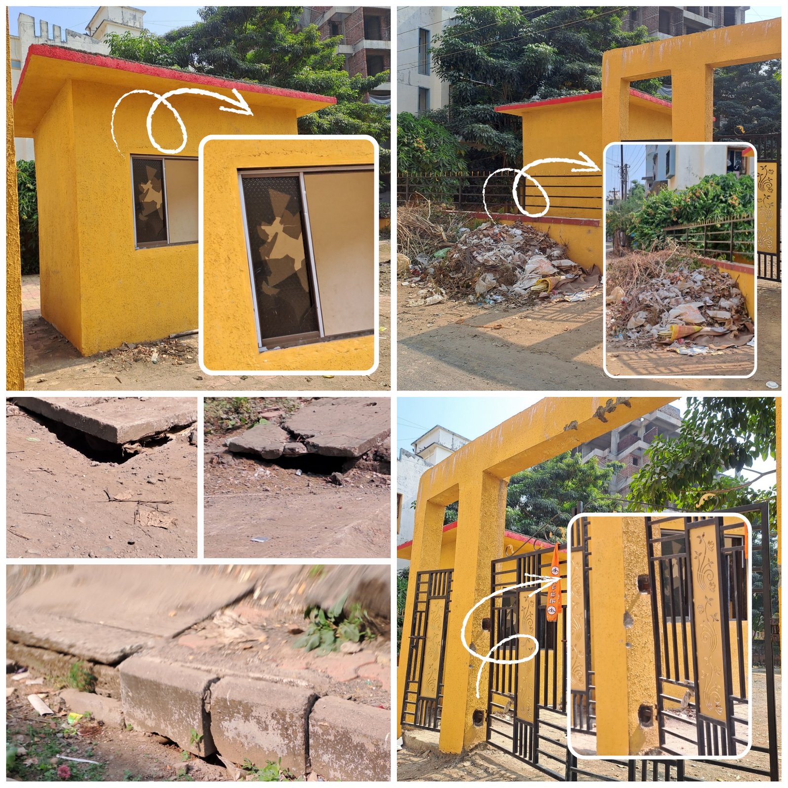 - गार्डन चे चे गेट तुटलेले दिसलें