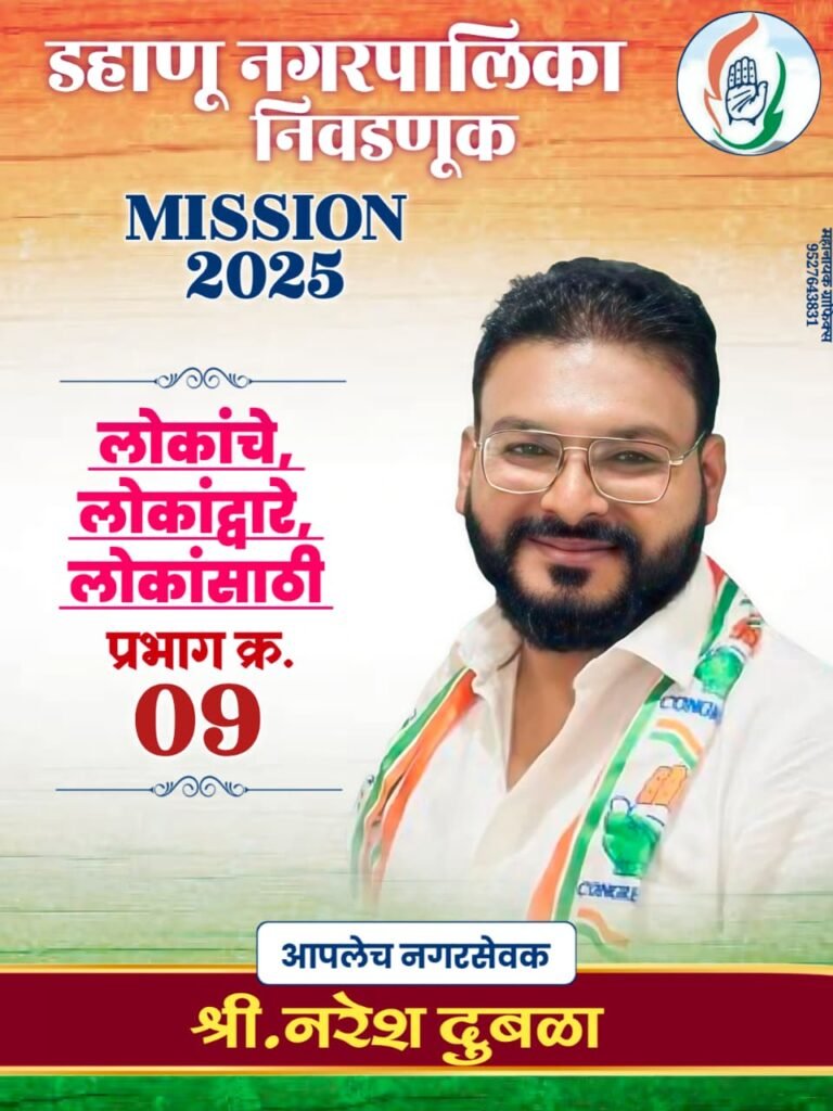 प्रभाग 9 मध्ये नरेश दुबळा हे काँग्रेसचे चर्चेत असलेले दावेदार. प्रभागातील रस्ते, ड्रेनेज आणि स्वच्छतेसंबंधित प्रश्नांवर त्यांनी सातत्याने सक्रिय भूमिका घेतल्याने त्यांच्यावरील विश्वास वाढला आहे. कुटुंबप्रधान मतदारवर्ग आणि युवकांमधून त्यांना चांगला प्रतिसाद मिळत आहे.काँग्रेसचा प्रचार मोड पूर्ण जोशातडहाणूत काँग्रेसने लवकरात लवकर आपली मोहीम सुरू करत जनसंपर्क, सोशल मीडिया आणि स्थानिक स्तरावरील सभा यांचा यशस्वी मेळ साधला आहे.घराघरातील भेटीस्थानिक समस्यांवरील अभ्यासपूर्ण मांडणीनव्या चेहऱ्यांची निवडयामुळे त्यांच्या प्रचाराला वेग आला आहे.