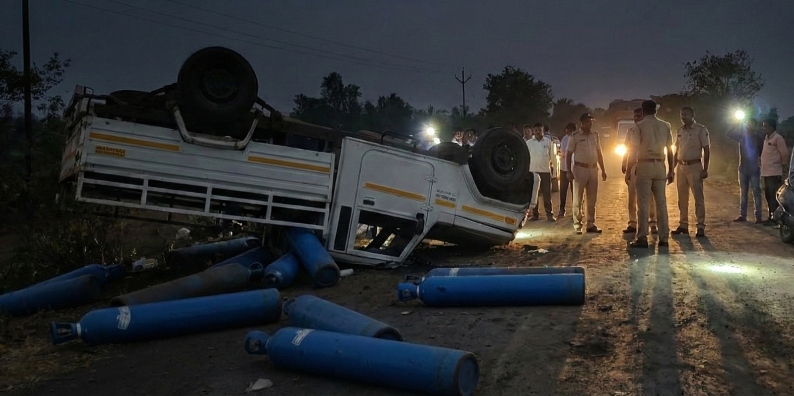 मिळालेल्या माहितीनुसार, पिकअपमधील ऑक्सिजन सिलेंडर अचानक हलल्याने चालकाचे वाहनावरील नियंत्रण सुटले व वाहन उलटले. अपघातानंतर स्थानिक नागरिकांनी तत्परता दाखवत बचावकार्य केले. अपघाताची माहिती मिळताच पोलिस घटनास्थळी दाखल झाले व परिस्थिती नियंत्रणात आणली.