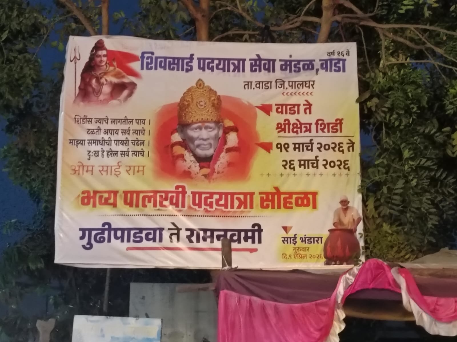 рд╢рд┐рд╡рд╕рд╛рдИ рдкрджрдпрд╛рддреНрд░рд╛ рд╕реЗрд╡рд╛ рдордВрдбрд│, рд╡рд╛рдбрд╛ рдпрд╛рдВрдЪреНрдпрд╛ рд╡рддреАрдиреЗ рдорд╛рдЧреАрд▓ рддрдмреНрдмрд▓ резрел рд╡рд░реНрд╖рд╛рдВрдкрд╛рд╕реВрди рдЧреБрдвреАрдкрд╛рдбрд╡рд╛ рддреЗ рд░рд╛рдордирд╡рдореА рдпрд╛ рдХрд╛рд▓рд╛рд╡рдзреАрдд рд╡рд╛рдбрд╛ рддреЗ рд╢рд┐рд░реНрдбреА рдЕрд╕рд╛ рднрд╡реНрдп рдкрд╛рд▓рдЦреА рд╕реЛрд╣рд│рд╛ рдЖрдпреЛрдЬрд┐рдд рдХрд░рдгреНрдпрд╛рдд рдпреЗрдд рдЖрд╣реЗ. рд╕рд╛рдИ рднрдХреНрддрд╛рдВрдЪреНрдпрд╛ рд╢реНрд░рджреНрдзрд╛, рднрдХреНрддреА рдЖрдгрд┐ рд╕рд╛рдореВрд╣рд┐рдХ рд╕рд╣рднрд╛рдЧрд╛рдЪреЗ рдкреНрд░рддреАрдХ рдард░рд▓реЗрд▓реНрдпрд╛ рдпрд╛ рдкрджрдпрд╛рддреНрд░реЗрд▓рд╛ рдпрдВрджрд╛рд╣реА рдореЛрдард╛ рдкреНрд░рддрд┐рд╕рд╛рдж рд▓рд╛рднрд▓рд╛.
