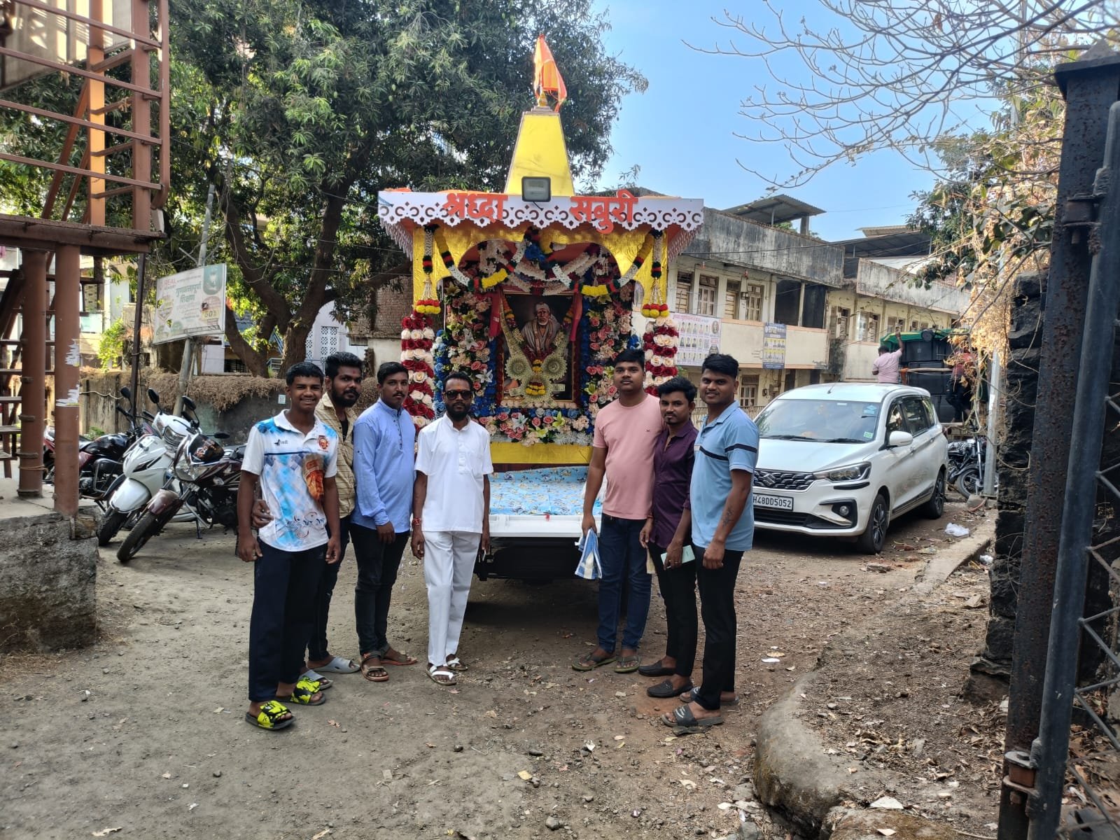 рдЖрдЬ рд╕рдХрд╛рд│реА рд╡рд╛рдбрд╛ рдпреЗрдереАрд▓ рд╢реНрд░реА рд╕рд╛рдИ рдордВрджрд┐рд░рд╛рддреВрди рд╡рд┐рдзрд┐рд╡рдд рдкреВрдЬрд╛-рдЕрд░реНрдЪрд╛ рдХрд░реВрди рдкрд╛рд▓рдЦреАрдЪреЗ рдкреНрд░рд╕реНрдерд╛рди рдХрд░рдгреНрдпрд╛рдд рдЖрд▓реЗ. рдпрд╛рд╡реЗрд│реА рд╕рд╛рдИрдВрдЪреНрдпрд╛ рдкреНрд░рддрд┐рдореЗрдЪреА рдкрд╛рд▓рдЦреАрдд рдкреНрд░рддрд┐рд╖реНрдард╛рдкрдирд╛ рдХрд░реВрди рдордВрдбрд│рд╛рдЪреНрдпрд╛ рдкрджрд╛рдзрд┐рдХрд╛рд▒реНрдпрд╛рдВрд╕рд╣ рднрд╛рд╡рд┐рдХрд╛рдВрдиреА тАЬрд╕рд╛рдИ рд░рд╛рдотАЭ рдЪреНрдпрд╛ рдЬрдпрдШреЛрд╖рд╛рдд рдкрджрдпрд╛рддреНрд░реЗрд▓рд╛ рд╕реБрд░реБрд╡рд╛рдд рдХреЗрд▓реА. рдорд╛рд░реНрдЧрд╛рдд рд╡рд┐рд╡рд┐рдз рдард┐рдХрд╛рдгреА рднрд╛рд╡рд┐рдХрд╛рдВрд╕рд╛рдареА рдЕрд▓реНрдкреЛрдкрд╣рд╛рд░, рдкрд┐рдгреНрдпрд╛рдЪреНрдпрд╛ рдкрд╛рдгреНрдпрд╛рдЪреА рд╡реНрдпрд╡рд╕реНрдерд╛ рддрд╕реЗрдЪ рд╡реИрджреНрдпрдХреАрдп рд╕реБрд╡рд┐рдзрд╛ рдЙрдкрд▓рдмреНрдз рдХрд░реВрди рджреЗрдгреНрдпрд╛рдд рдпреЗрдгрд╛рд░ рдЕрд╕рд▓реНрдпрд╛рдЪреЗ рдордВрдбрд│рд╛рдХрдбреВрди рд╕рд╛рдВрдЧрдгреНрдпрд╛рдд рдЖрд▓реЗ.